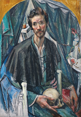 中村彝 《頭蓋骨を持てる自画像》 1923年 油彩/カンヴァス 101.0×71.0cm 公益財団法人大原芸術財団 大原美術館 ※画像・写真の無断転載を禁じます