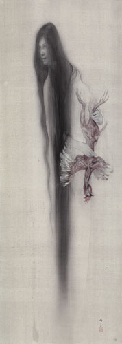 《夜盲症》2005年(平成17年)絹本着色、軸 138.4×49.5cm 成山画廊蔵
