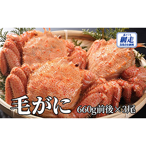 網走産 毛がに1.98kg前後(660g前後×3尾)