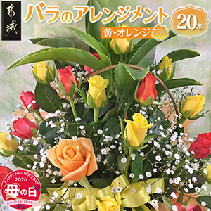 【母の日】バラのアレンジメント20本(黄・オレンジ)≪5月7日〜10日お届け≫