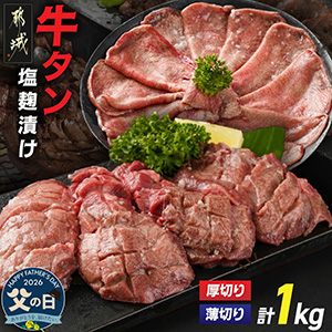 【父の日】牛タン塩麹漬け 厚切り&薄切り1kgセット≪6月18日〜21日お届け≫