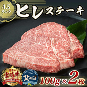 【父の日】宮崎牛ヒレステーキ(A5)100g×2枚≪6月18日〜21日お届け≫