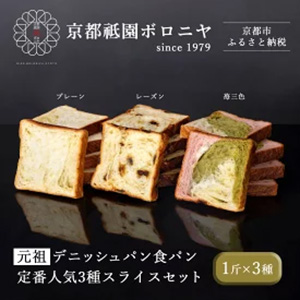 【京都祇園ボロニヤ】元祖デニッシュ食パン定番人気3種スライスセット(各1斤×3)