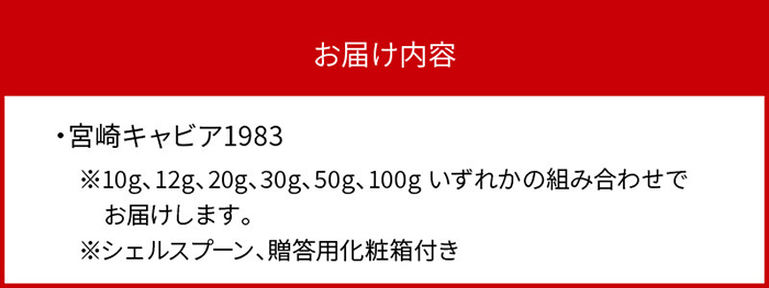 宮崎県産キャビア合計300g(10g、12g、20g、30g、50g、100g いずれかの組み合わせでお届けします。)