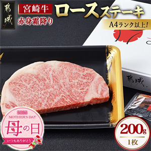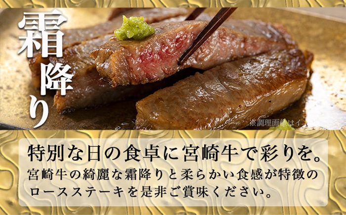 宮崎牛の綺麗な霜降りと柔らかい食感が特徴のロースステーキです。