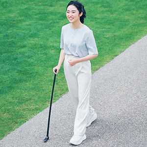 杖が前後方向にしなることによって、前に進む力を補ってくれる杖です。一般的な杖が「ブレーキ」として機能することに対して、スリーパートは、「アクセル」の機能を果たしてくれます。