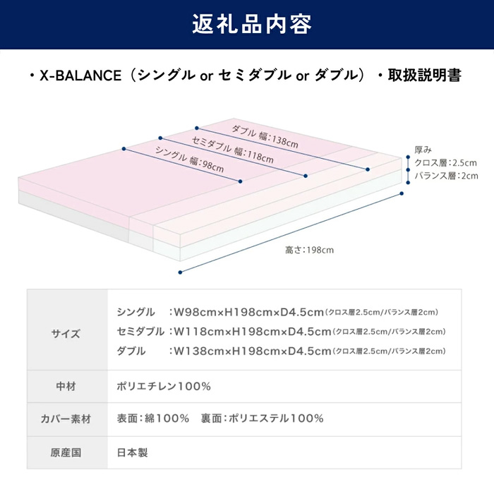 ¡¡¥µ¥¤¥º¡§W98cm ¡ß H198Ñ ¡ß D4.5cm¡Ê¥¯¥í¥¹ÁØ2.5cm/¥Ð¥é¥ó¥¹ÁØ2cm)