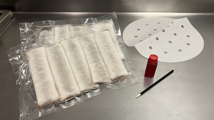 5本入りパック1袋につき、調理の際に使用する「せいろシート」、調理後に熨斗(線)や絵を描いて