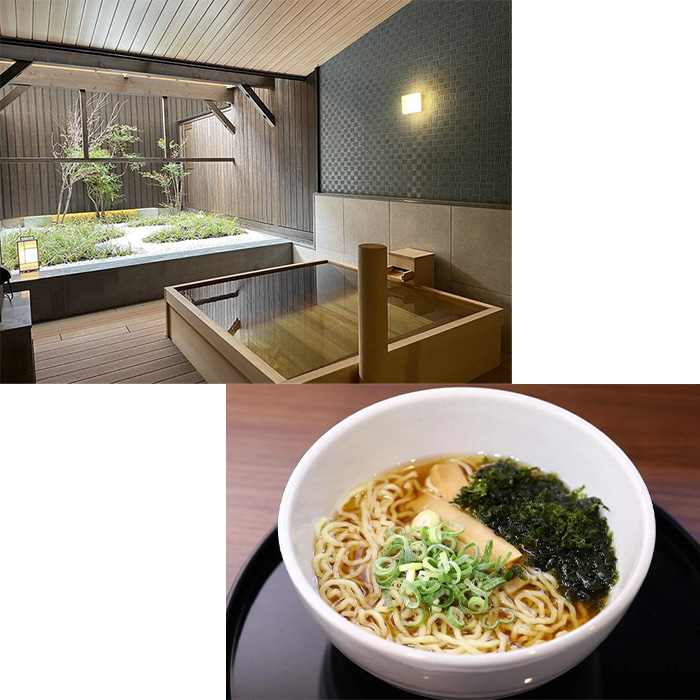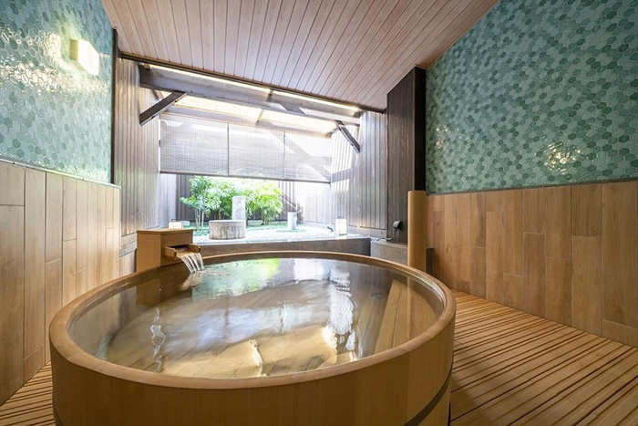 男女で異なるサウナ、岩盤浴も設え、広々とした露天風呂、樽風呂では京都の風を感じながら湯浴みいただけます。