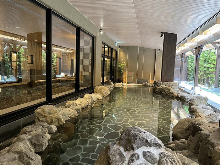 京都の街中にいることを忘れさせてくれるような開放感溢れる大浴場。