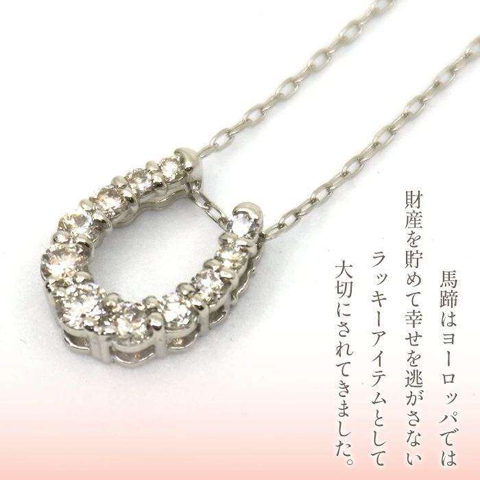 プラチナの馬蹄ペンダントはダイヤモンド11石 トータル0.50カラットのシンプルデザインです。