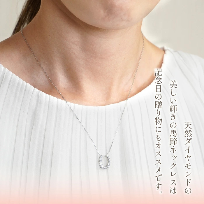 天然ダイヤモンドの美しい輝きの馬蹄ネックレスは記念日の贈り物にもオススメです。