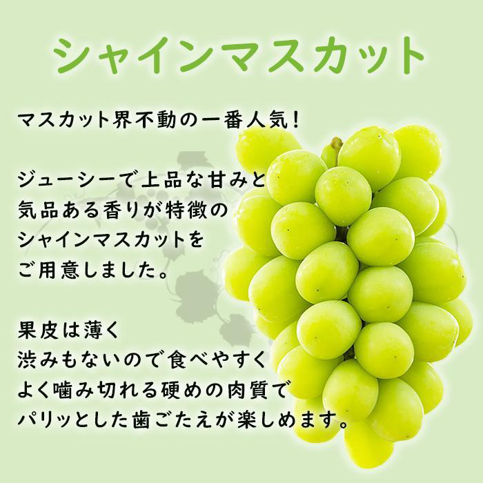 マスカット界 不動の一番人気!さわやかな酸味と甘みのシャインマスカットをご用意しました。