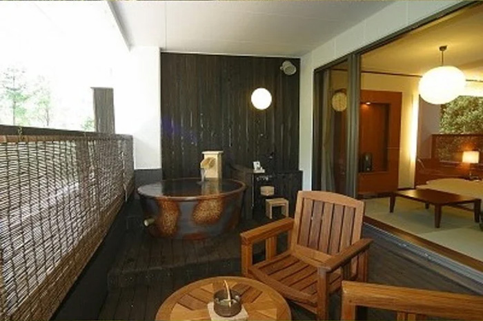 露天風呂付き客室”保豆山"は開放的なお部屋空間が広がり、いつでも自由に温泉を楽しんで頂けます。