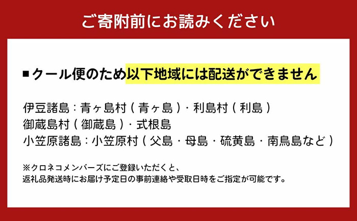 ・冷蔵配送期間は、あいにく離島への配送ができかねます。予めご了承ください。
