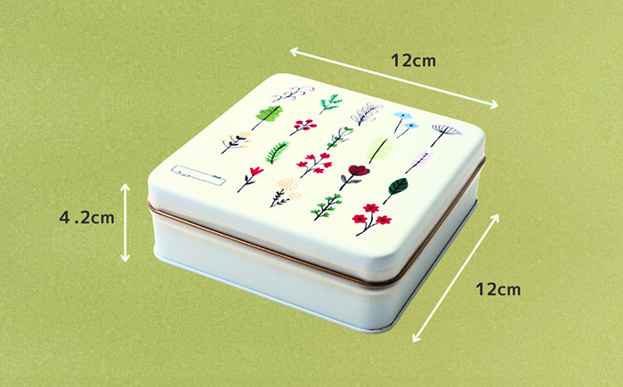 クッキー缶のサイズ:縦12cm×横12cm×高さ4.2cm