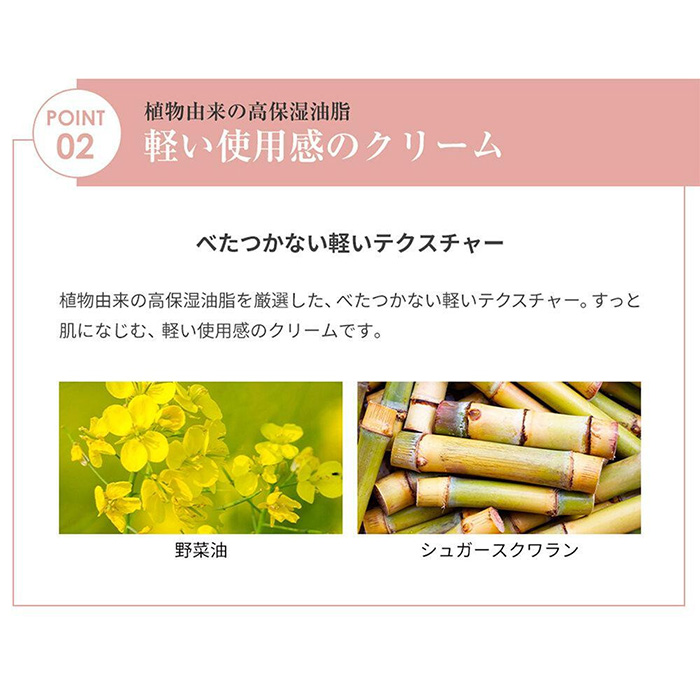 植物由来の高保湿油脂を厳選。べたつかない軽い使用感のクリーム。