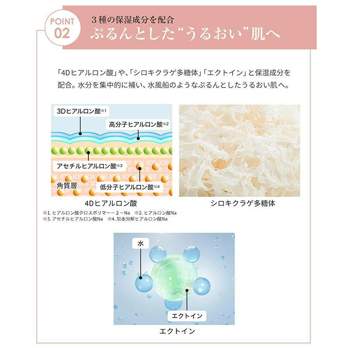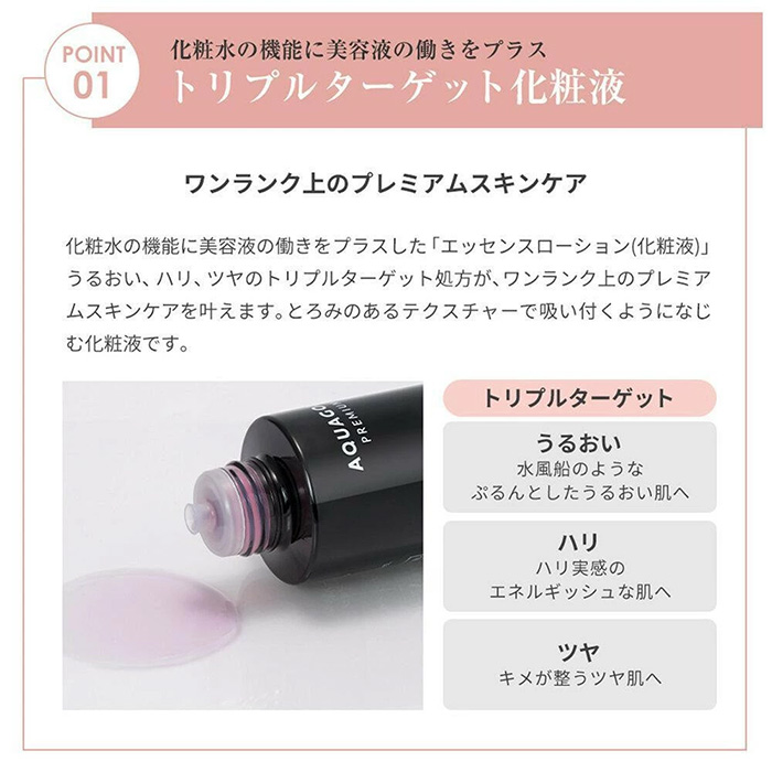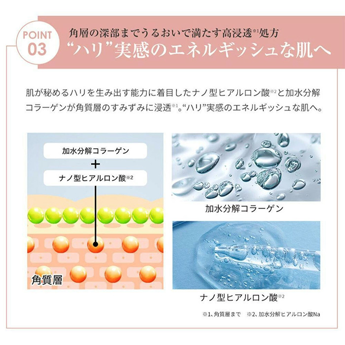うるおい・ハリ・ツヤのトリプルターゲットにアプローチし、ワンランク上のスキンケアで濃密なうるおい肌へと導きます。