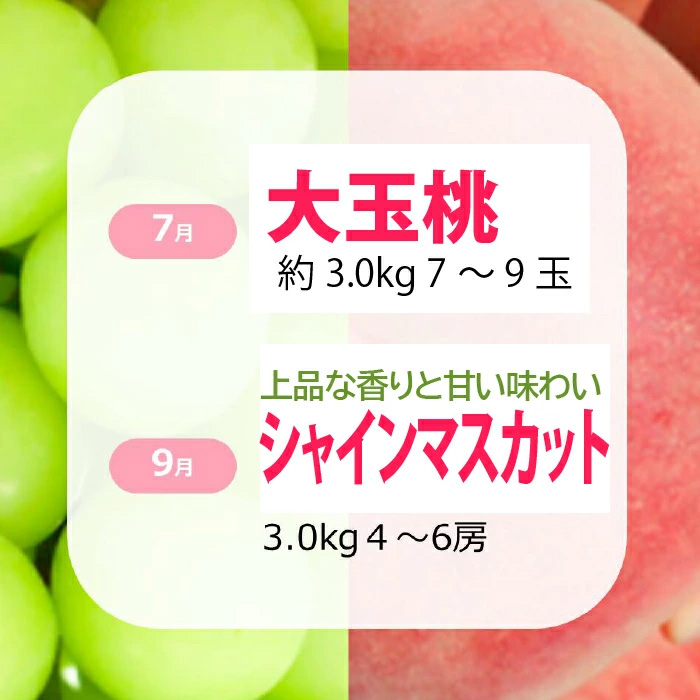 ※6/30以降のご寄附の場合は、ぶどうからの発送となります。(桃の発送は翌年となります) ※8/31以降のご寄附の場合は、翌年に桃とぶどうを発送いたします。 ※沖縄・離島への配送はできません |