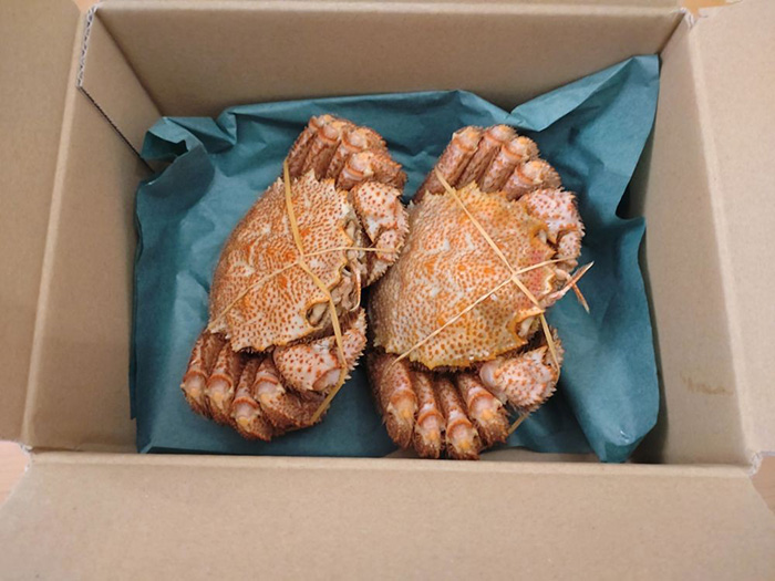 北海道の海産物の代表とも言える太平洋沖の新鮮な毛ガニを塩茹でした後に冷凍したものです。