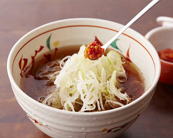 薄切りバームクーヘン豚肉、和風仕立てのつゆ、それらを引き立てる薬味。