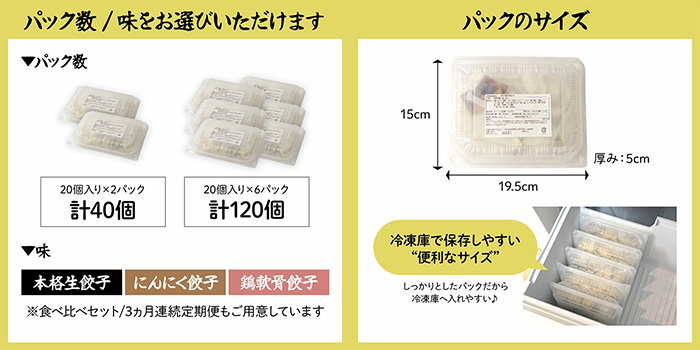・本格生餃子20個入りx2パック(40個)×3回(計120個)