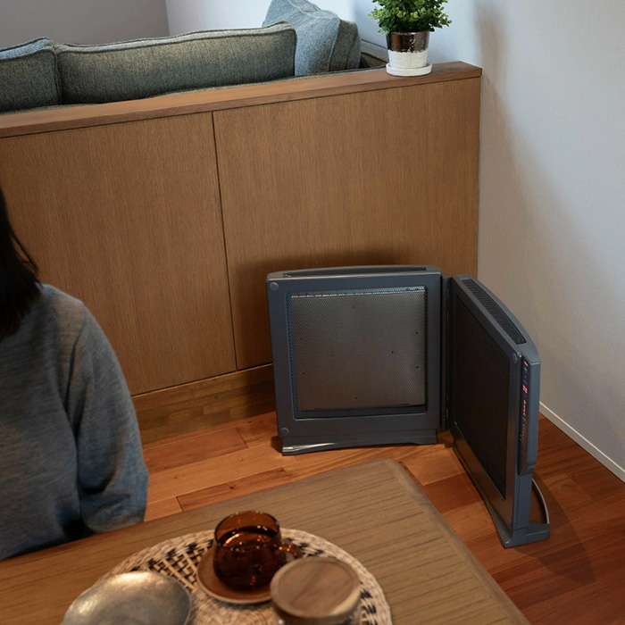 半開きにすると遠赤外線が交わり、暖房効率がUPします。暖めたい所に集中暖房。足元が冷えやすいキッチンや暖房器具を部屋の角に置いて、集中的に暖めたい方に最適です。