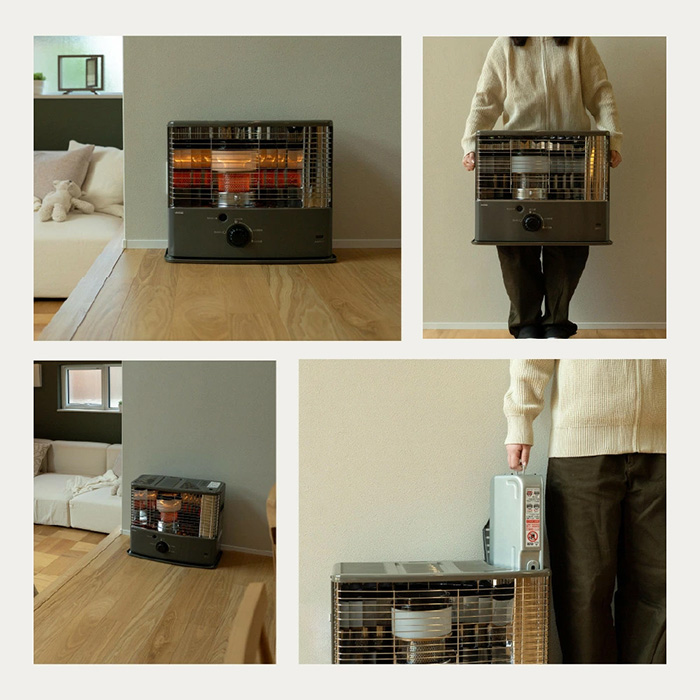 石油ストーブはエアコンにはない特徴を持った暖房機です。灯油を燃やした時に水蒸気が発生し、湿度が高まることで同じ室温でも体感温度が高く感じられます。また実際の炎だからこそ感じる本当の暖かさ。