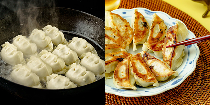 鍋に沸騰させたお湯へ、凍ったままの餃子を入れ、5分茹でてください。