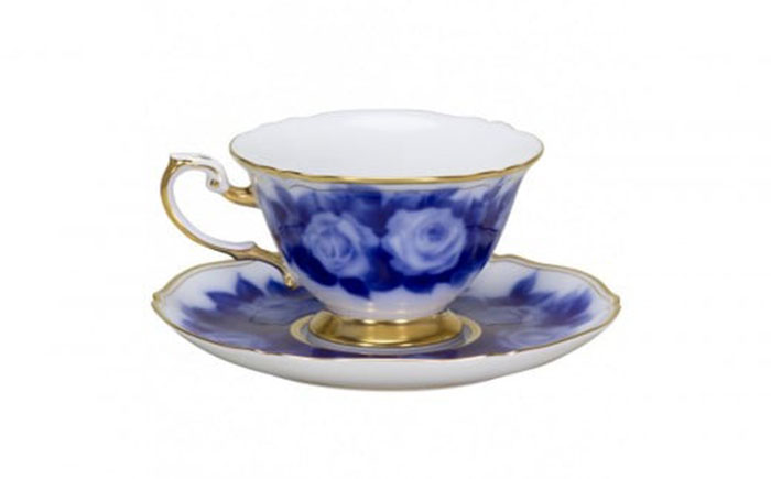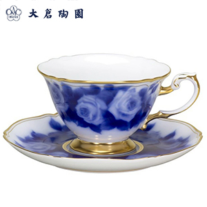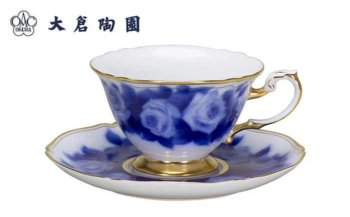 深いブルーの色彩は、大倉陶園独自の『岡染め』技法。 炎の芸術が創り出す神秘の色彩です。