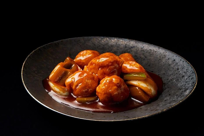 ふかひれスープ(1個)、海老のチリソース(1個)、和豚もちぶたの酢豚(1個)