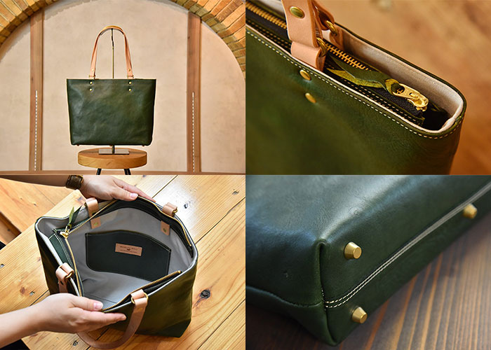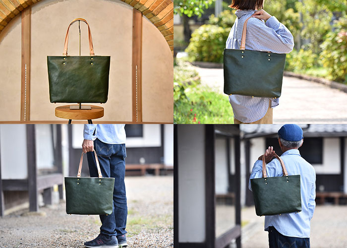 ・近江牛レザーを使ったトートバッグ ディープグリーン 1個