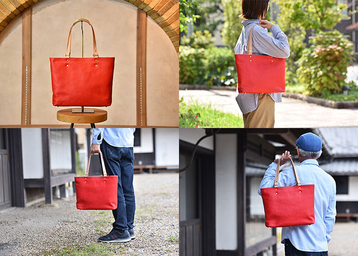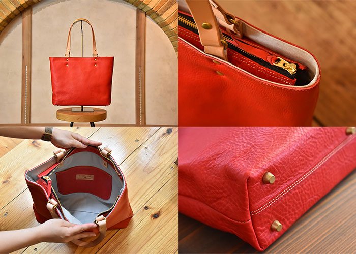 ・近江牛レザーを使ったトートバッグ ルビーレッド 1個
