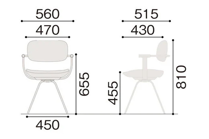 【サイズ】W560(脚:450mm)×D515×H810mm(SH455mm) スチール脚径:φ15.9mm