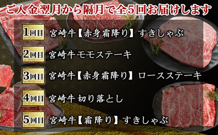 『都城ファン』の皆様へ宮崎牛の様々な形で、ご入金翌月から隔月で全5回お届けします。是非、ご堪能下さい。