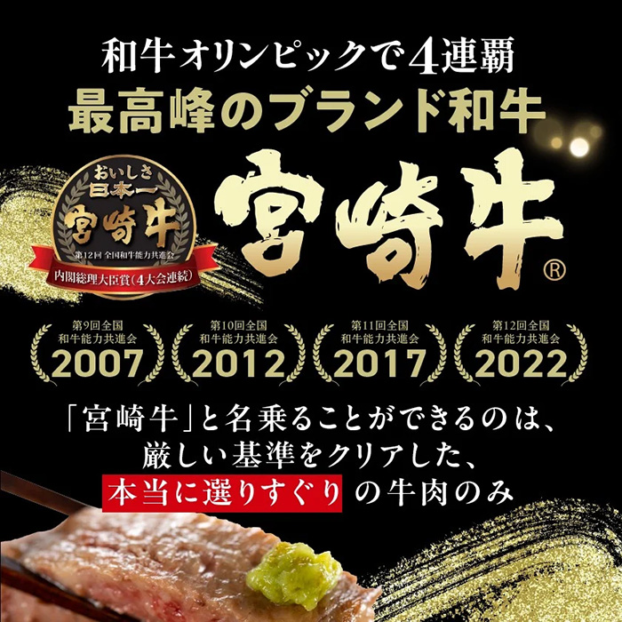 宮崎県産牛肉の中で最上級のランクに位置づけされる「宮崎牛」。