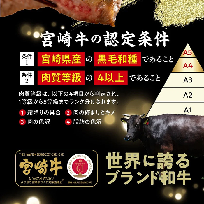 肉質4等級以上のものだけが「宮崎牛」の称号を与えられます。