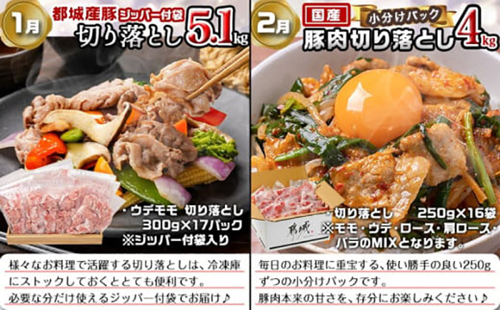 1月:都城産豚切り落とし5.1kg(ジッパー付袋入り)