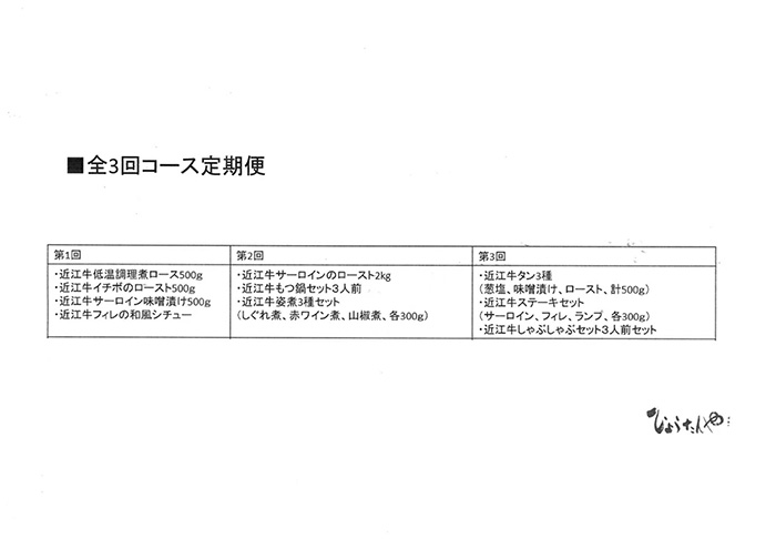 現社長と料理長が日本三大和牛近江牛を学び最高級のA4.A5ランクの近江牛を一頭買いし調理したものを、年3回(4ヶ月に1回)に分けてお客様のご自宅にお届け致します。