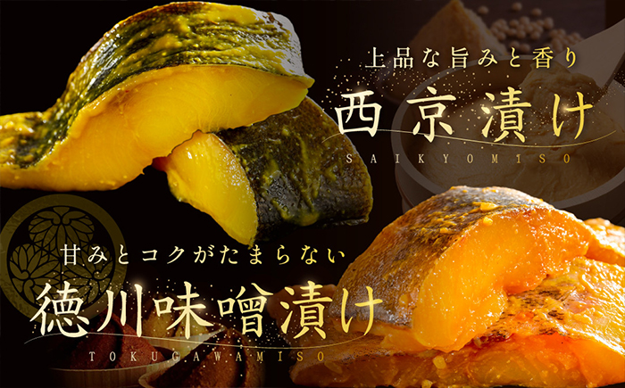 上品な旨味と香りの西京漬け、甘みとコクがたまらない徳川味噌漬けは焼くだけで料亭のような味わい。