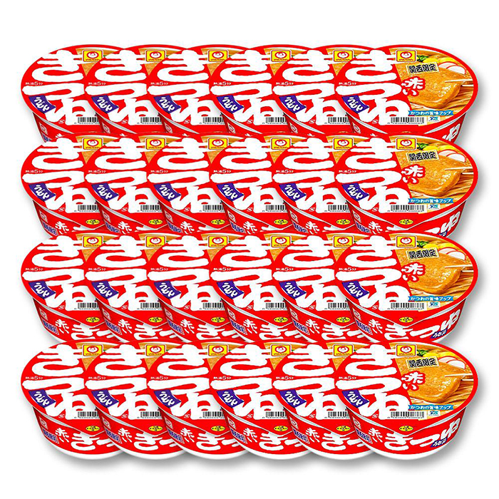 昆布・雑節・鰹節・煮干しの出汁を利かせた関西風つゆにコシのあるうどん、お揚げ入り。関西限定の「赤いきつね」をお届けします。