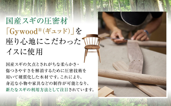 国産スギの圧密材「Gywood®(ギュッド)」を使用した、座り心地にこだわったイスです。