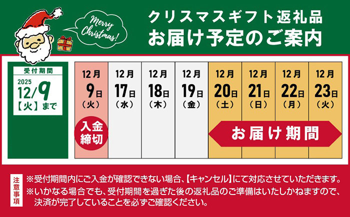 | 発送日 | 寄附金受領確認後、2025年12月20日(土)〜12月23日(火)までに順次お届けします。