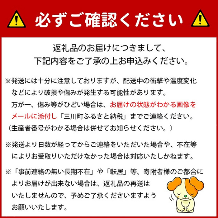 | 発送日 | 寄附金受領確認後、令和8年1月中旬頃より順次配送します。(金曜日発送)