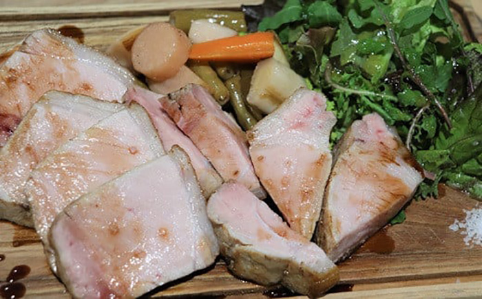 食の都庄内において、長い歴史をもつ庄内豚は、あっさりとした甘みのある脂身と、柔らかく味わい深いある赤身が特徴です。