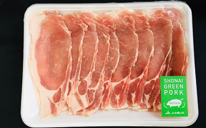 庄内豚肉は『厳選した生産者の証-庄内グリーンポーク使用』登録農家制による山形県庄内地方限定生産の豚肉です。あっさりとした甘みのある脂肪と、やわらかく味わいある赤身をスライスカットしてお届けいたします。