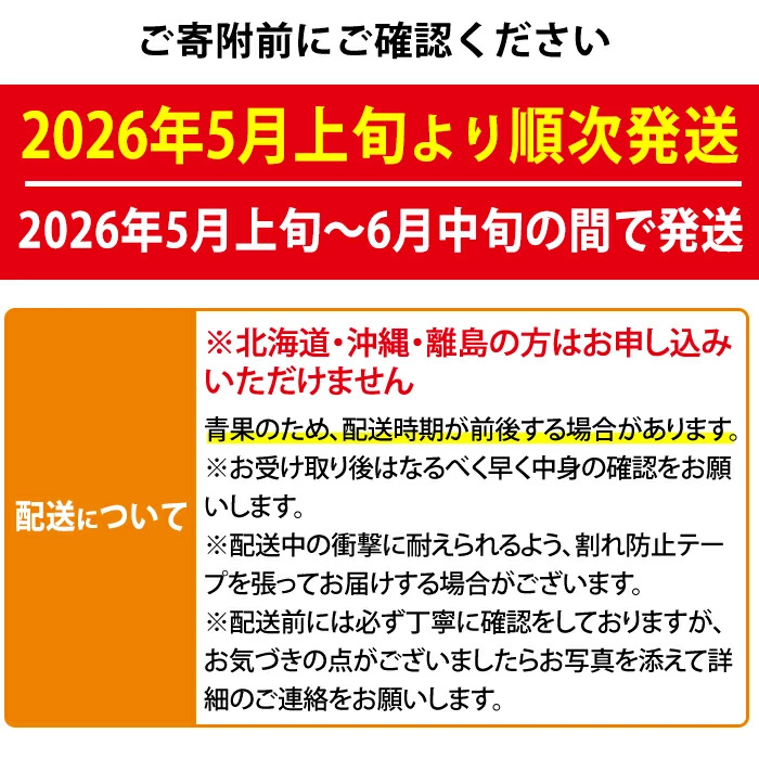 【1回目】5月上旬発送予定 【2回目】6月上旬発送予定 ※青果のため、配送時期が前後する場合があります。 ※北海道・沖縄・離島にはお届けできません。 |