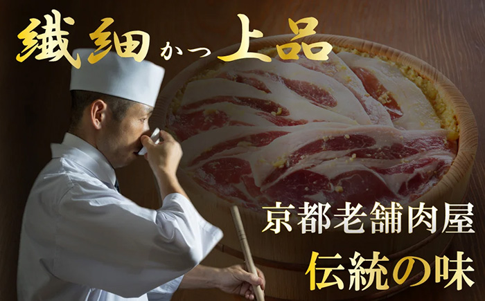 アツアツのフライパンの上にお肉を置いた瞬間にたちこめる味噌の香ばしい香りが食欲をそそります。京都のお肉屋さんで受け継がれる伝統の味を、じっくりとご賞味ください。