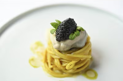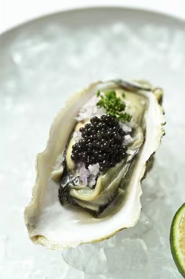キャビアの色はダークグレーブラウンからダークグリーンのものが多く、口溶けの良い食感で心地良い海の香りと上質な甘みと深いコク、そしてヘーゼルナッツのような余韻が特徴です。複雑で上質、バランスの取れた味わいで、全てにおいてワンランク上の味と食感をお楽しみいただけます。