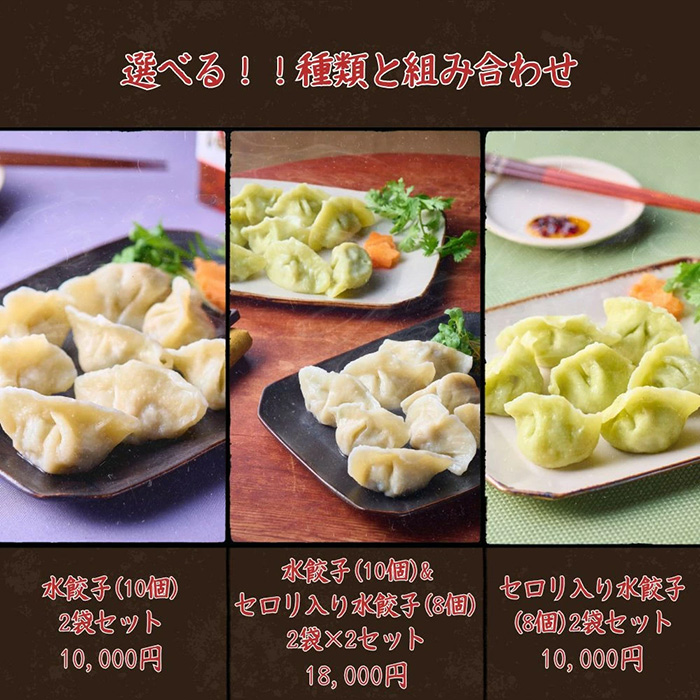 水餃子 10個入り(180g) ×2袋、セロリ入り水餃子 8個入り(144g) ×2袋